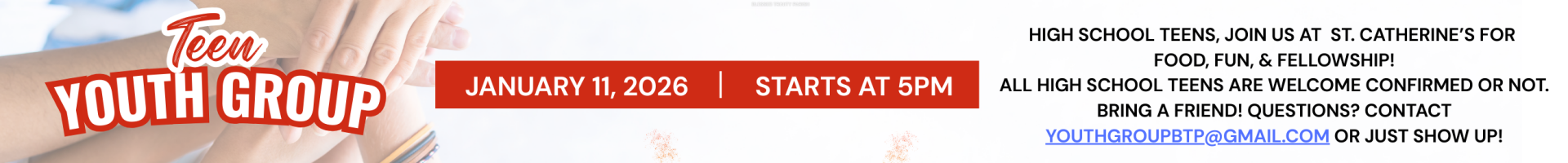 High School Teens and Families! Note these wonderful times for prayer and connection this Sunday (new time due to the Patriots Game)! The BTP Social Justice Ministry has a new website! Click Below! Please connect with us on...